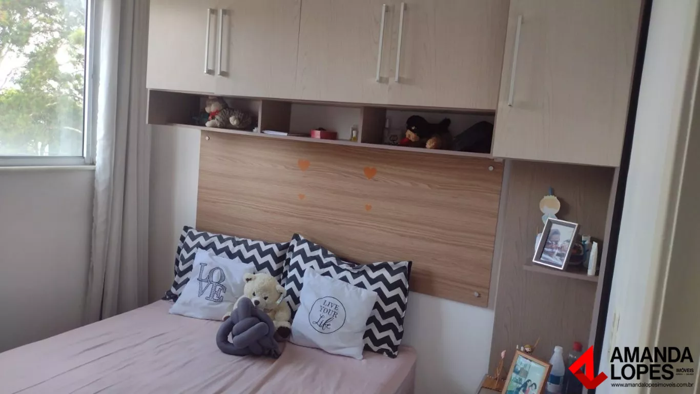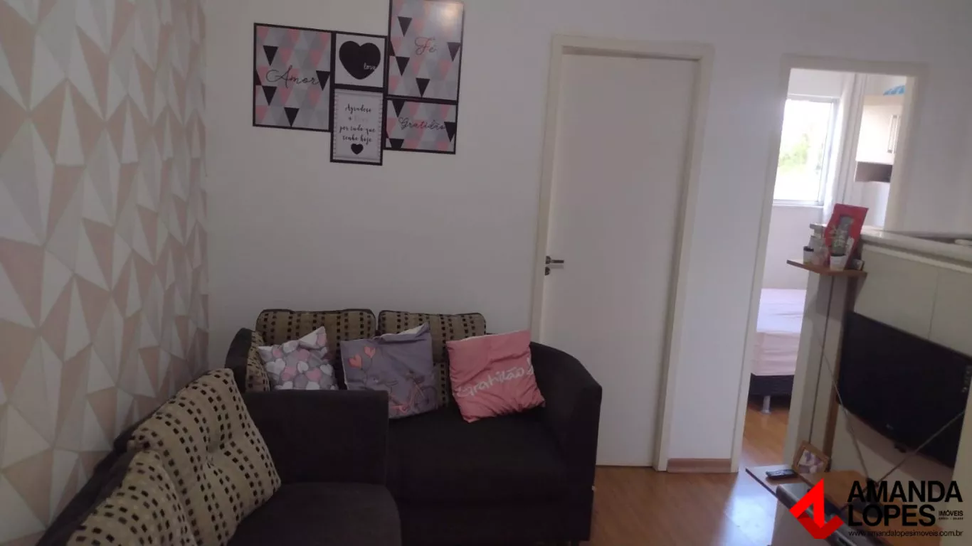 Apartamento no Condomínio Yuni, 44m². São 2 quartos, sala, banheiro social e cozinha conjugada com área de serviço. 1 vaga rotativa.