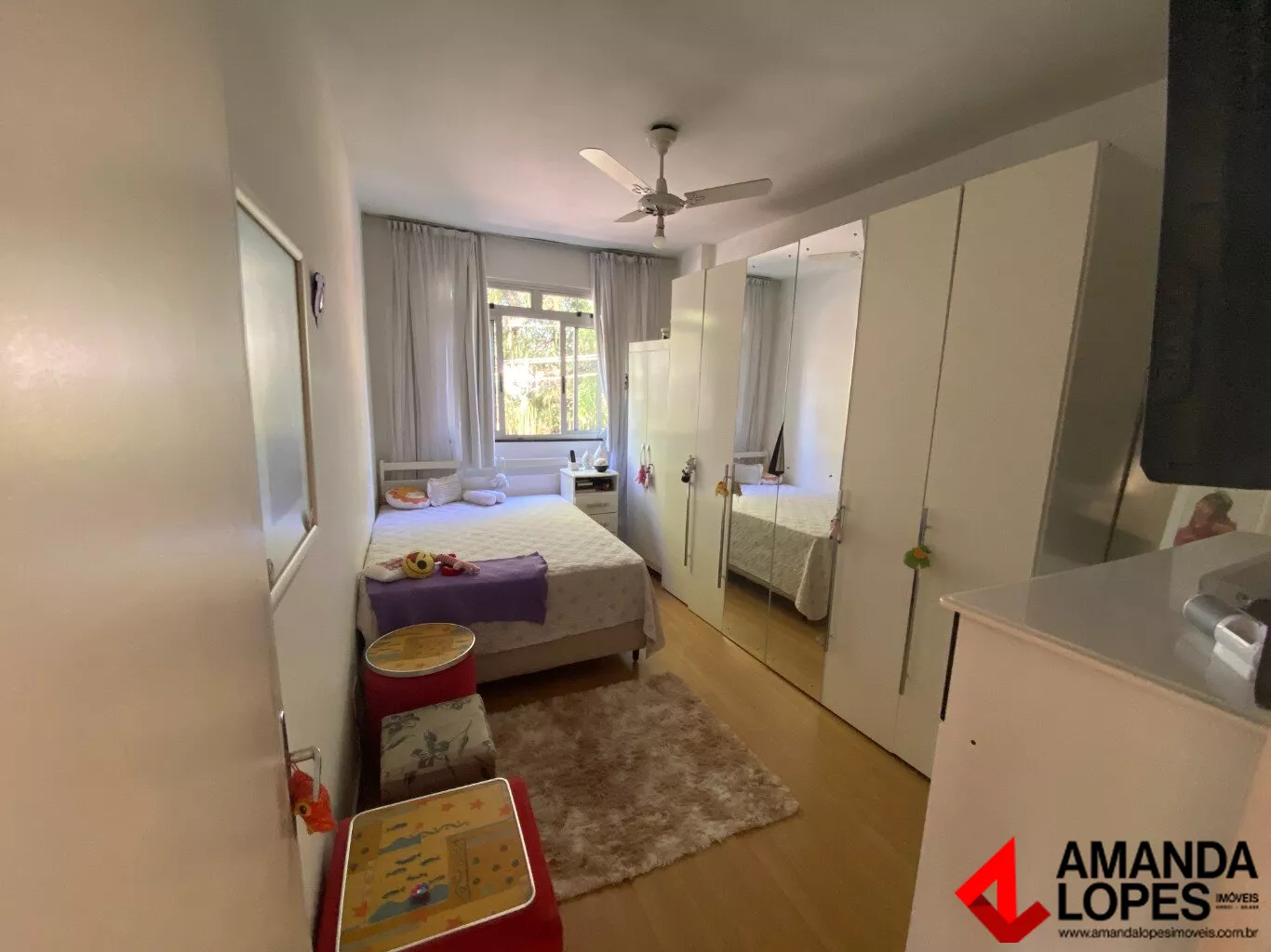 Apartamento no bairro Vale do Ipê, 80m². São 2 quartos, sala, banheiro social, cozinha e área de serviço separada c/ banheiro de apoio e dispensa. 1 vaga coberta e numerada. Imóvel de frente com sol da manhã. 4 andar de escada. 2 km / 5 min do Centro. Ótima localização.